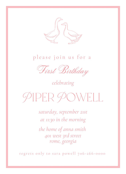 Storybook Geese Baby Shower/Birthday invitation, Pink