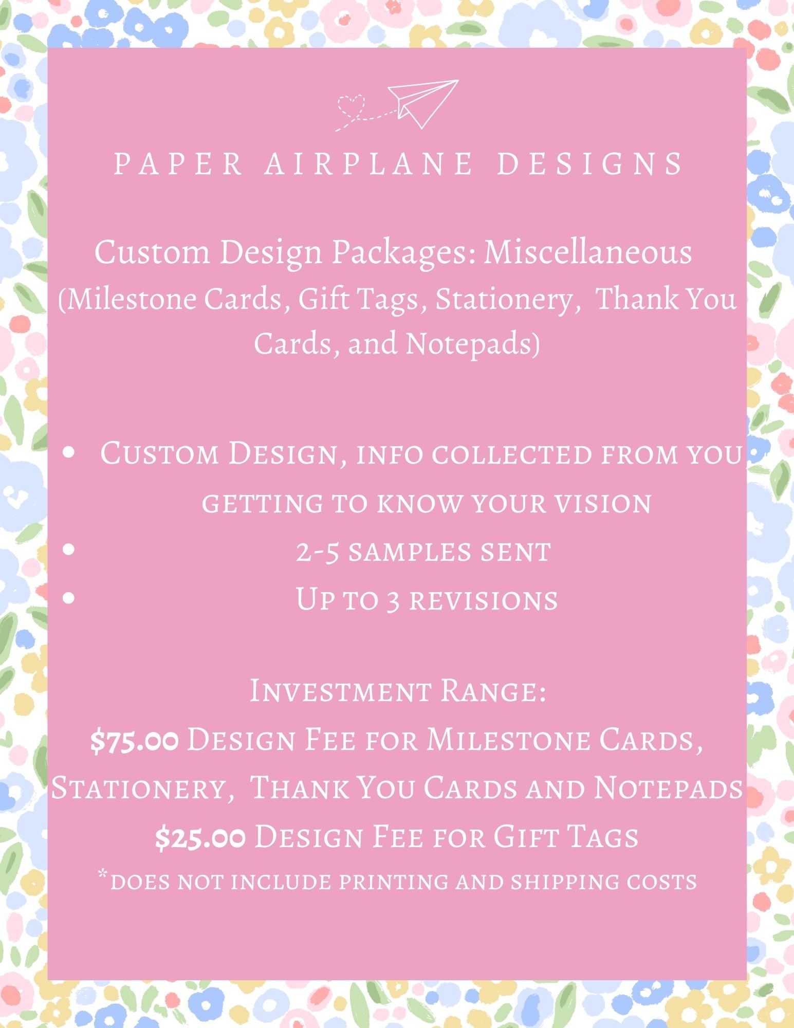 Wanting a custom design for stationery, thank you cards, gift tags, milestone cards, or notepads?