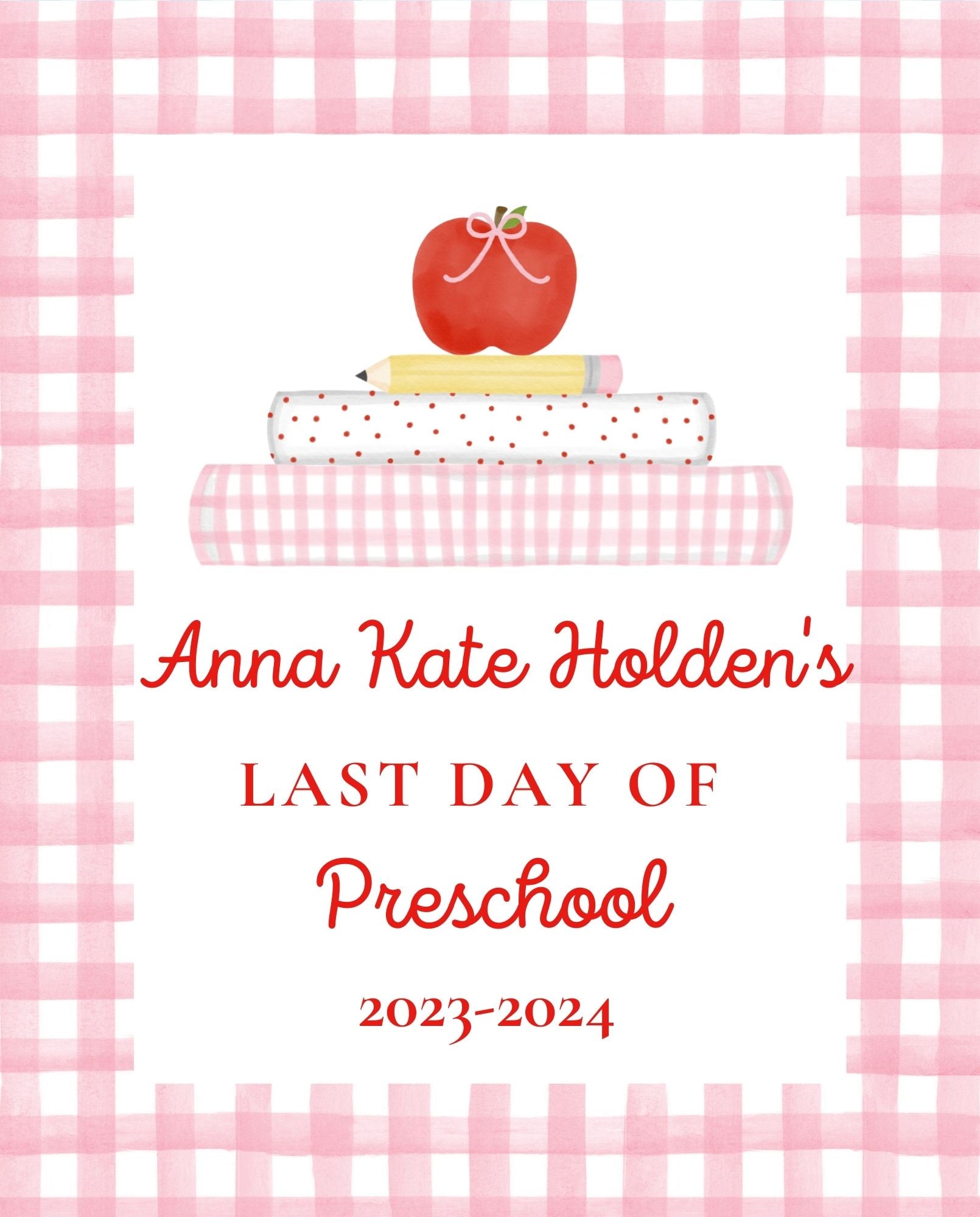 Back To School Handheld Sign, Girls Stack of Books, 8x10