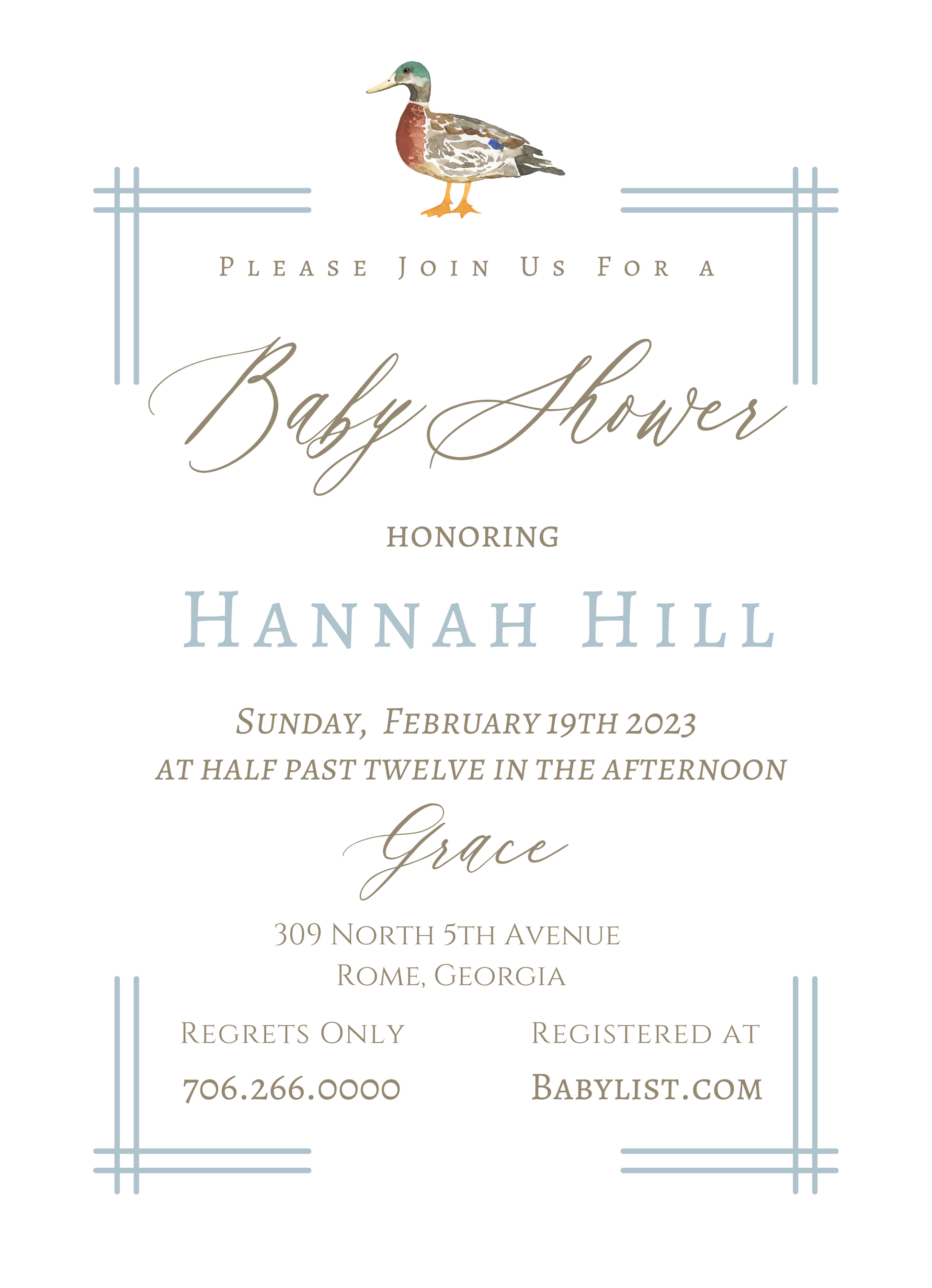 5x7 Classic Duck Shower Invitation, includes invite and blank envelopes