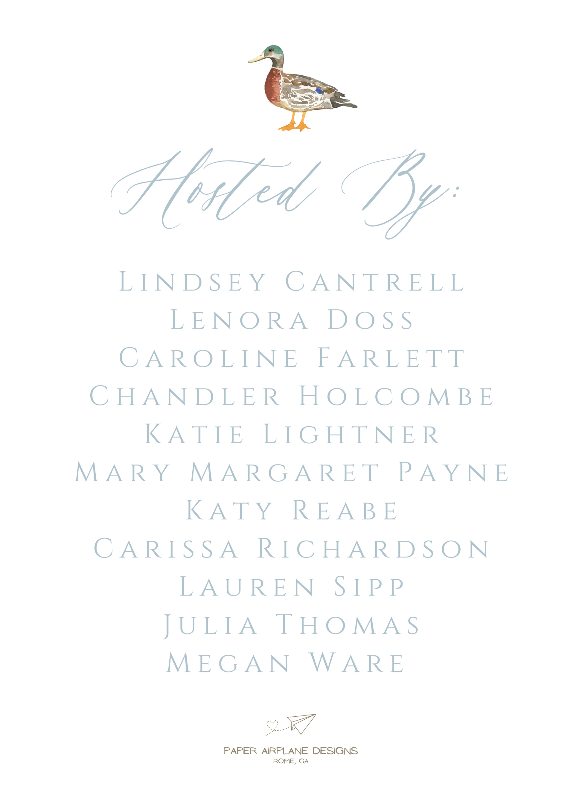 This invitation can be customized for a baby shower, couples shower or any party. Host list on the back is optional.