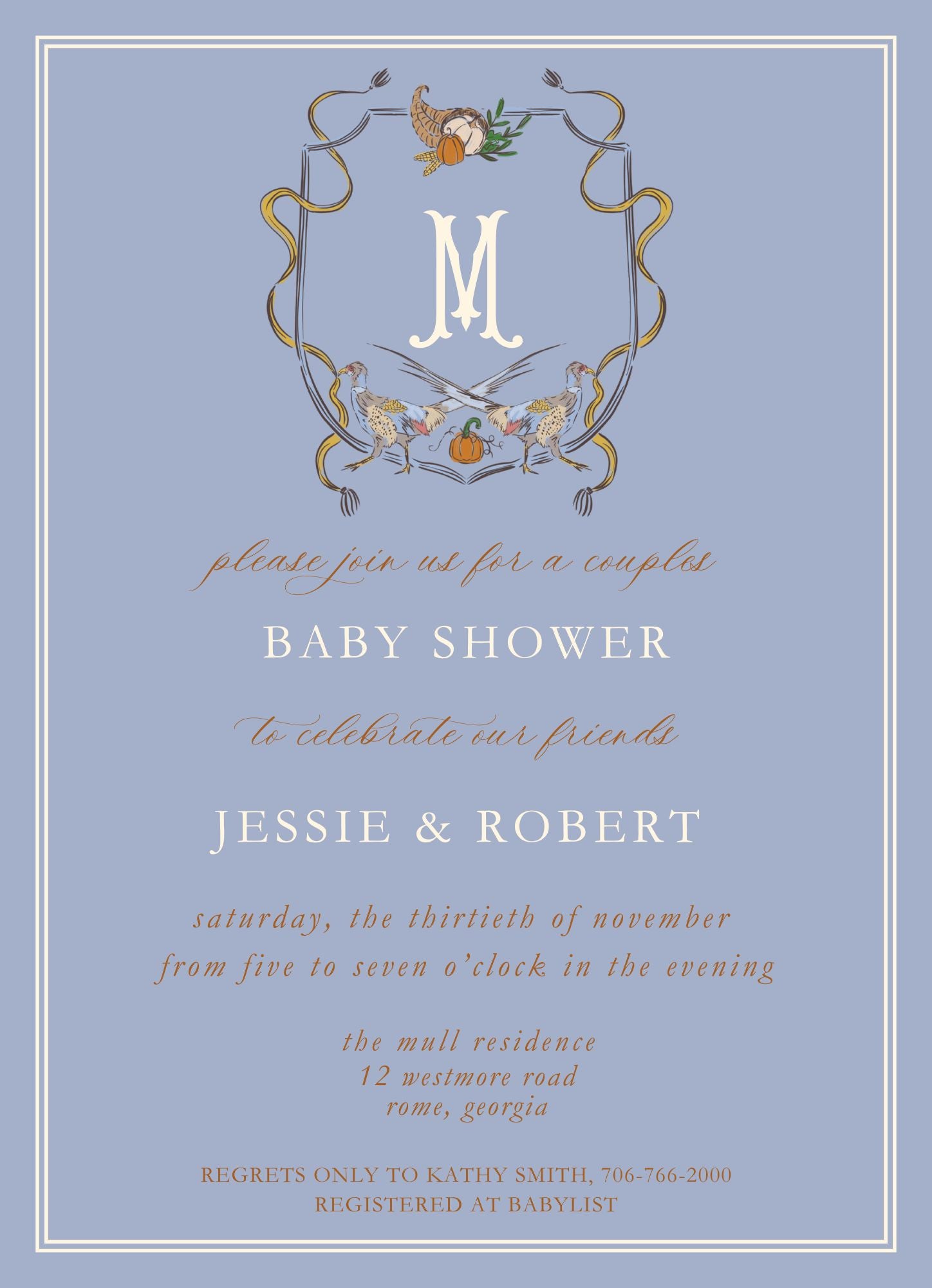 Oak Hill Pheasant Invitation (blue)
