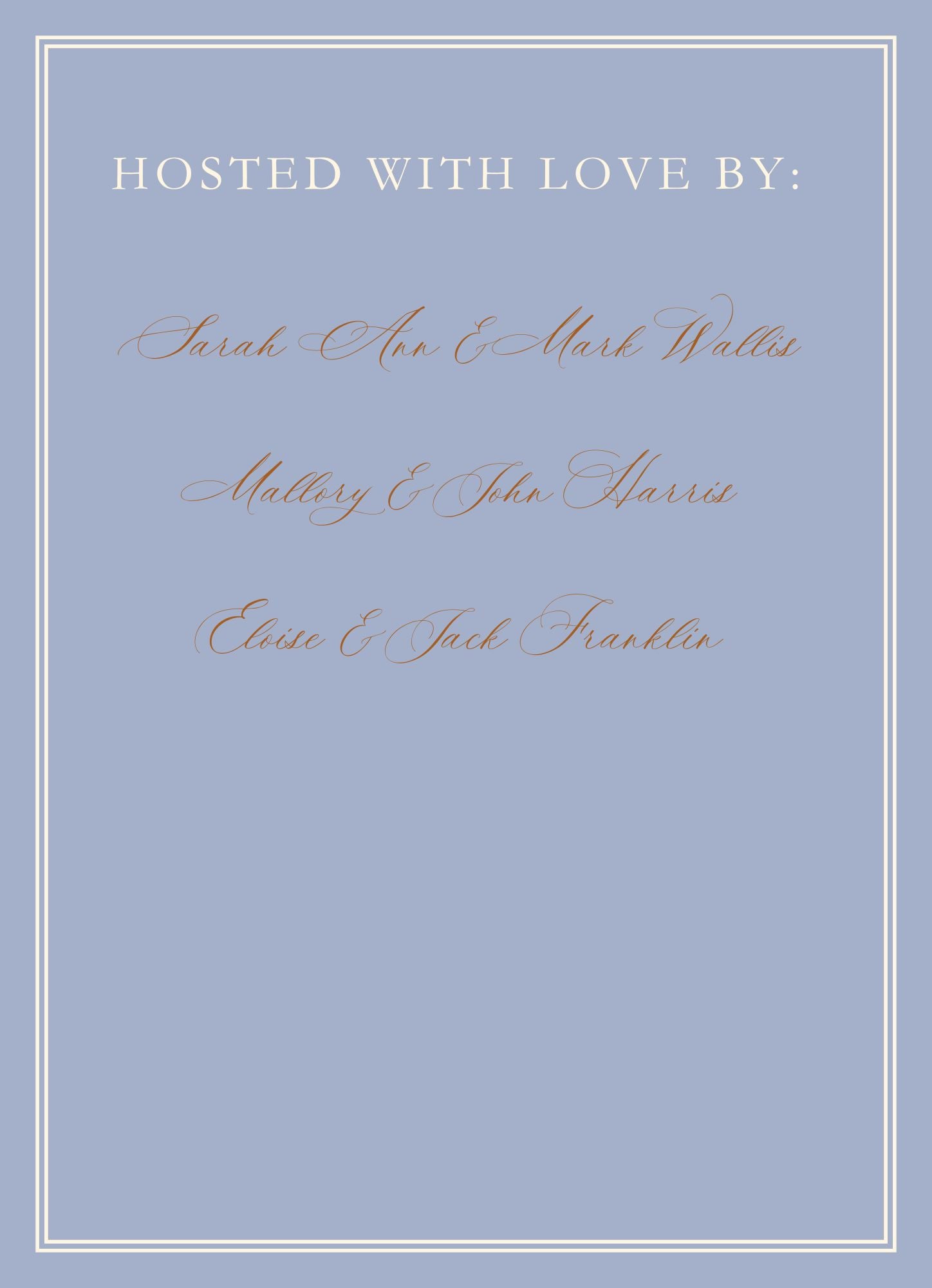 Can be adjusted for birthday party, showers, rehearsal dinner and many other gatherings