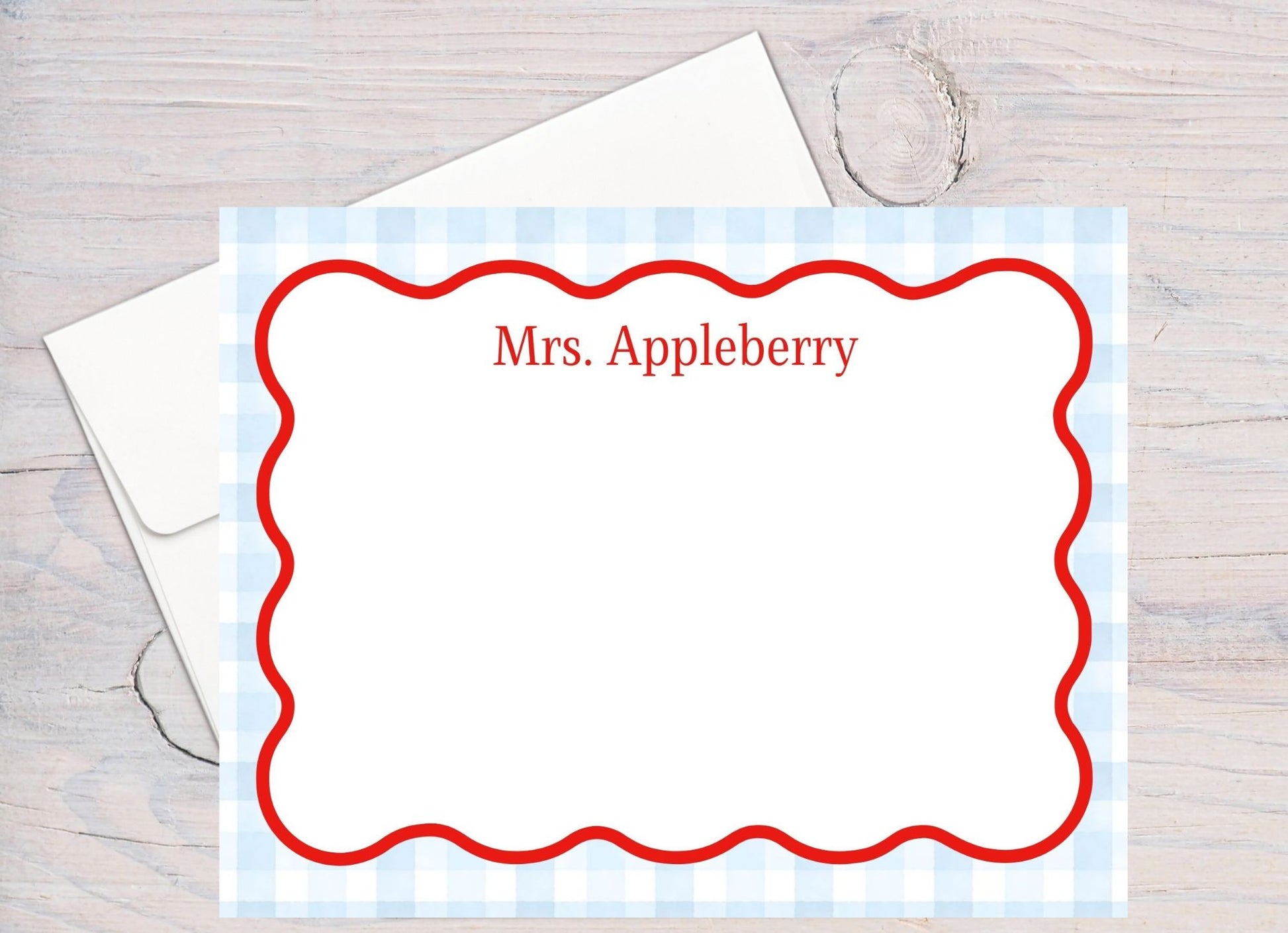 Personalized Teacher Stationery, Blue Gingham Wavy