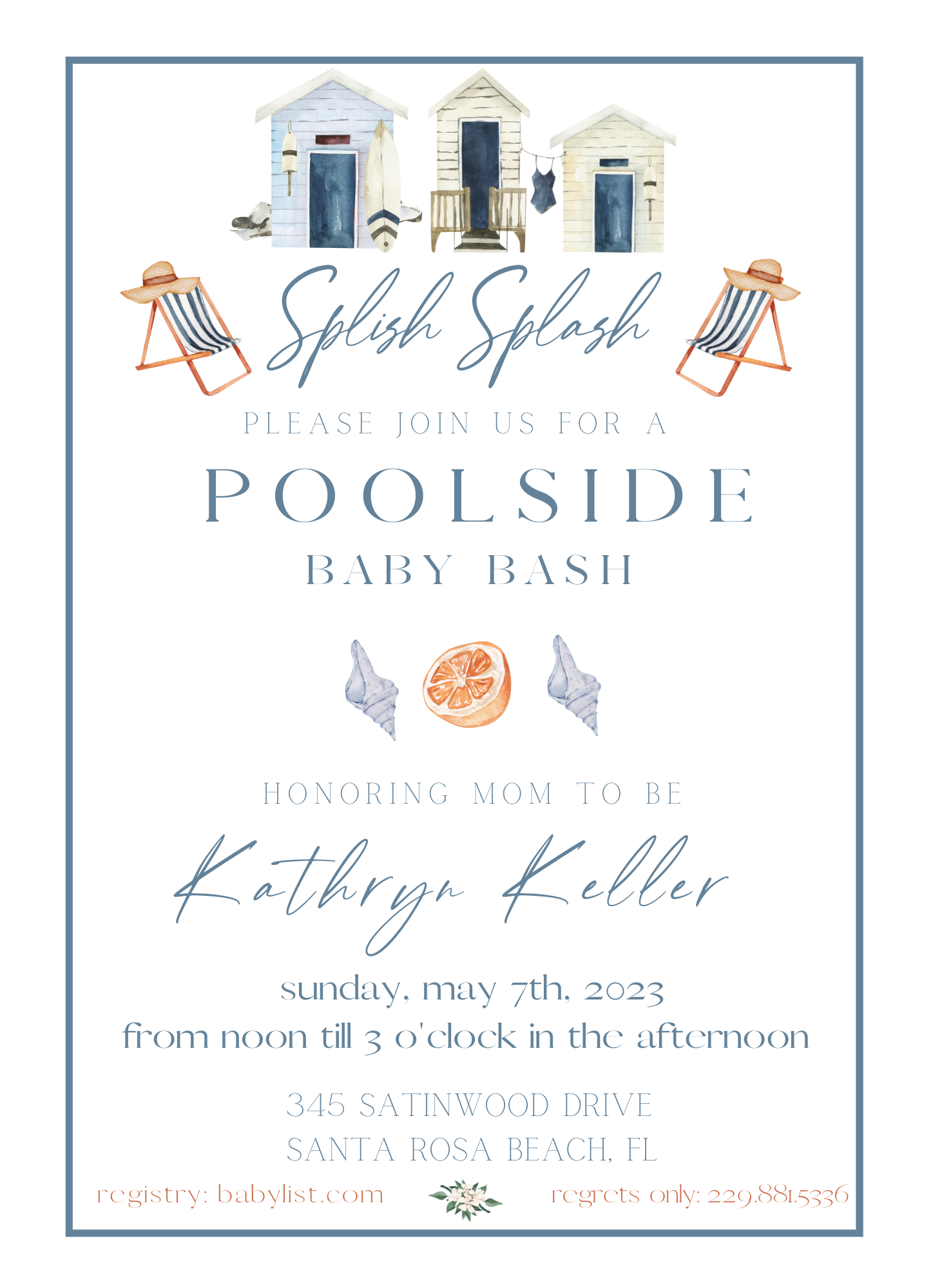 Seaside Shower Invitation, 5x7, includes invitation and standard white envelopes