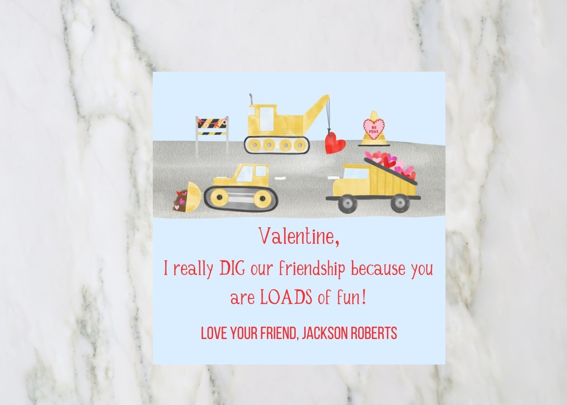 Valentine's Day Card, Construction Vehicles