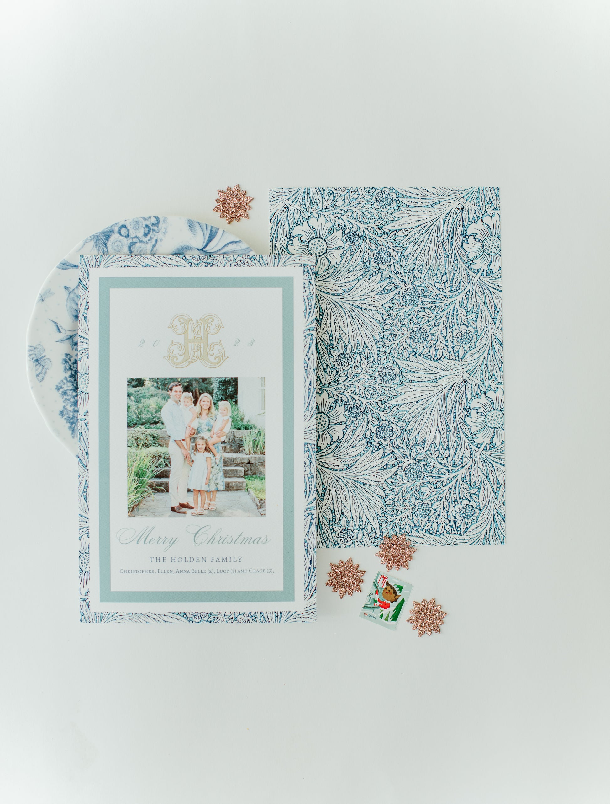 Winter Florals Blue Holiday Card, A9